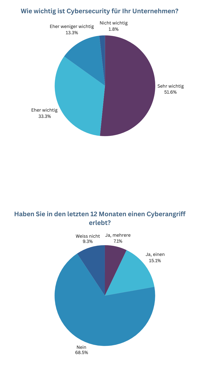 - Über 22% haben in den letzten 12 Monaten mindestens einen Cyberangriff erlebt.